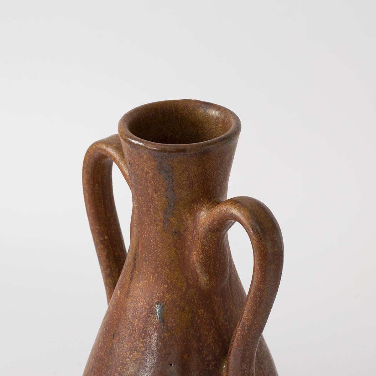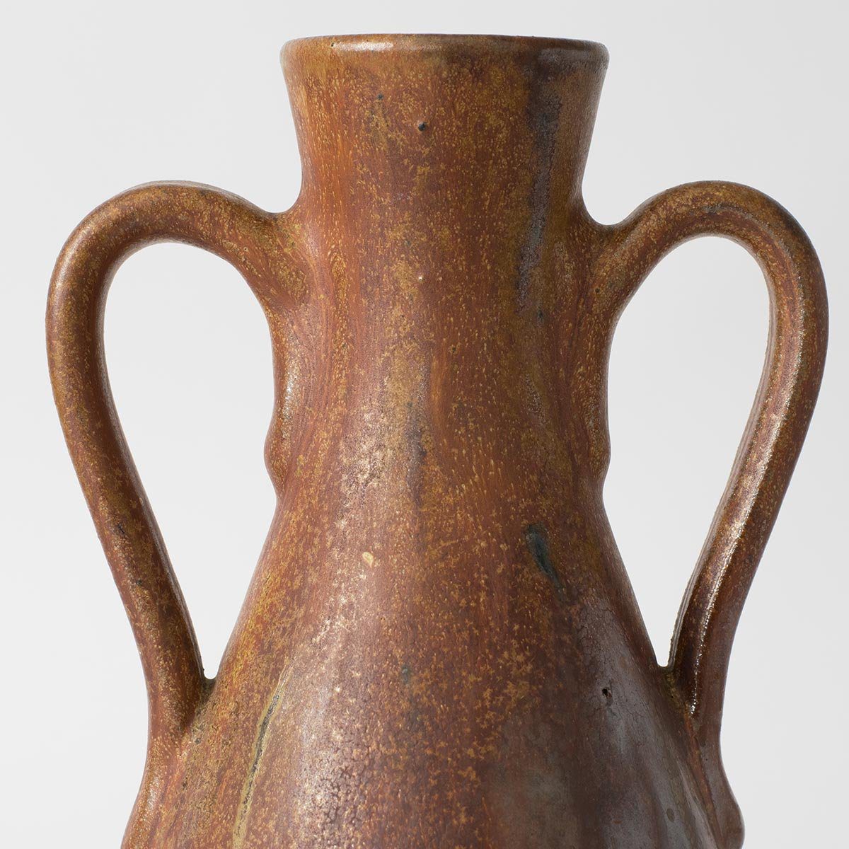 Ręcznie wykonany wazon z brązowym szkliwem z lat 20./30. XX wieku. Jego autorem jest Pierre Biron (1896-1948) – belgijski artysta-ceramik działający w słynącej z produkcji ceramiki miejscowości Bouffioulx. Wazon pokryty jest szkliwem w kolorze rdzawego brązu. Na spodzie znajduje się sygnatura autora.