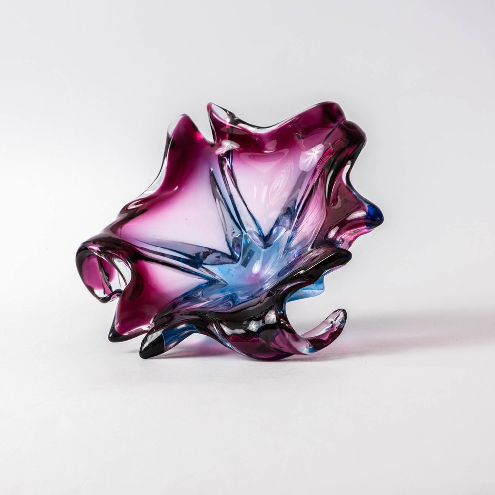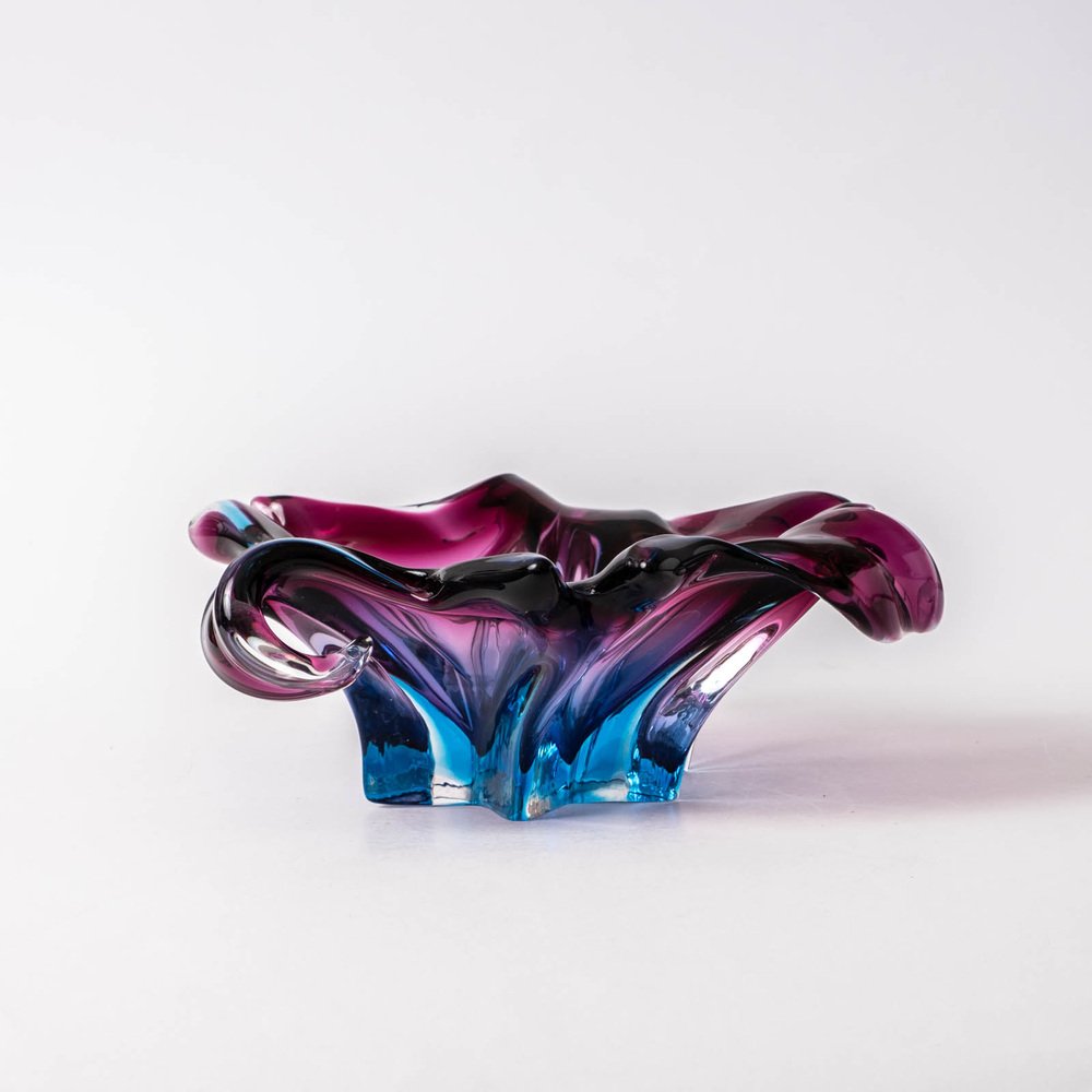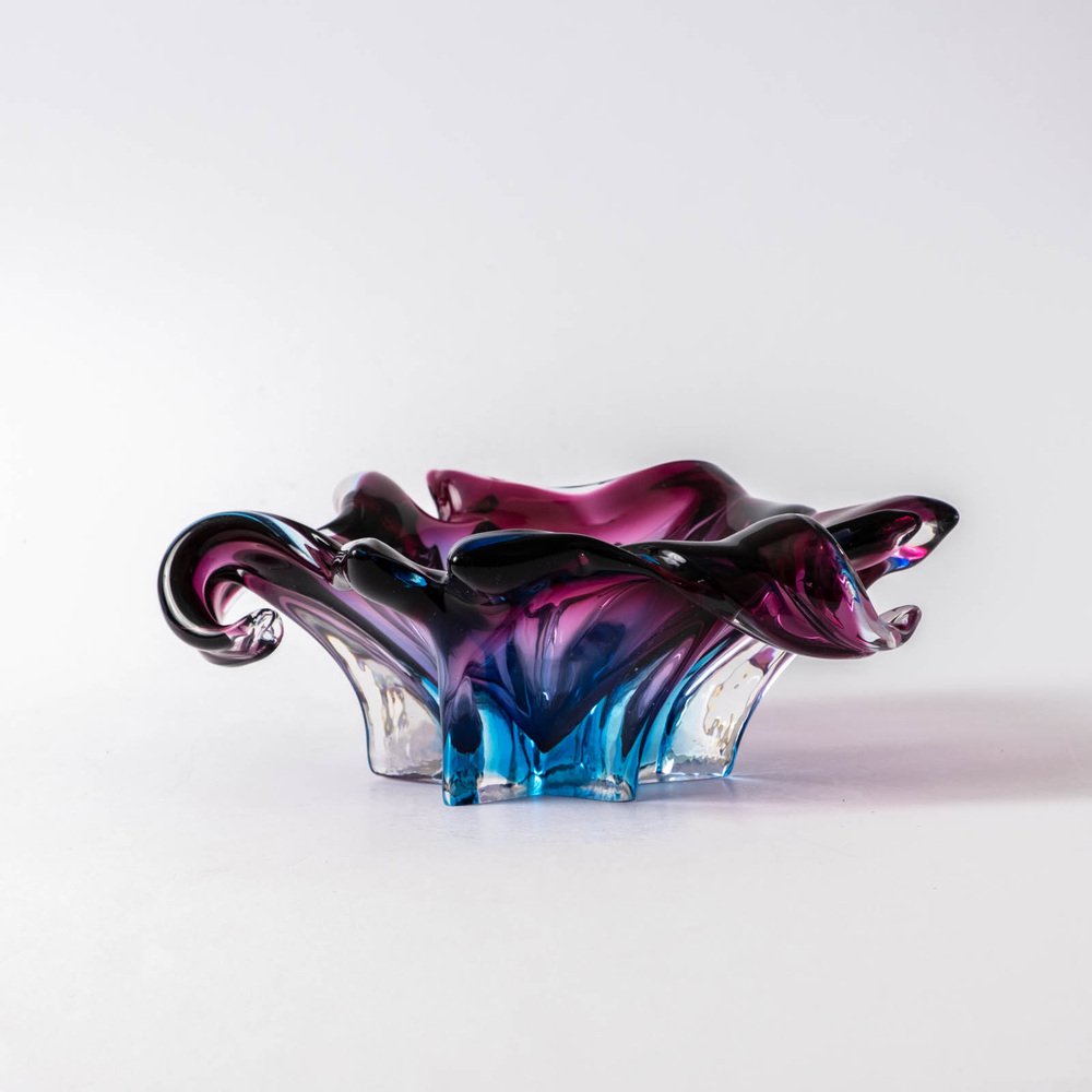Fioletowo-błękitna patera ze szkła Murano sommerso, lata 60.