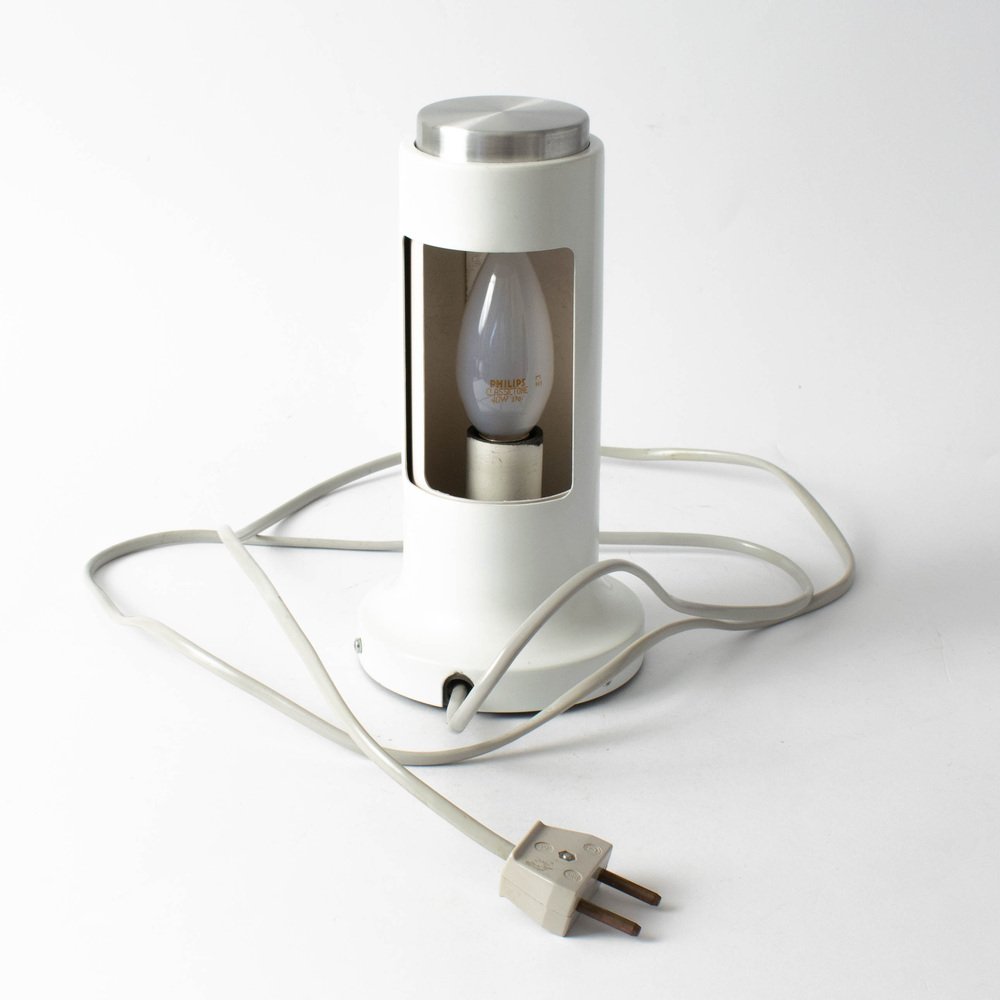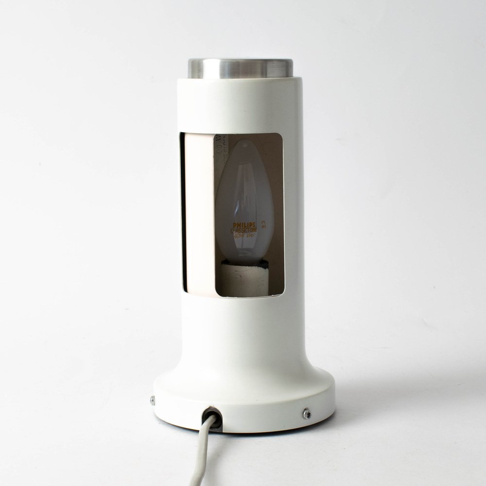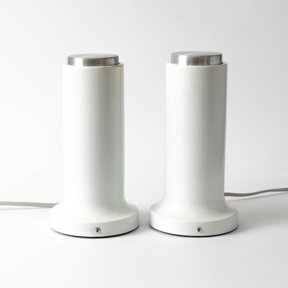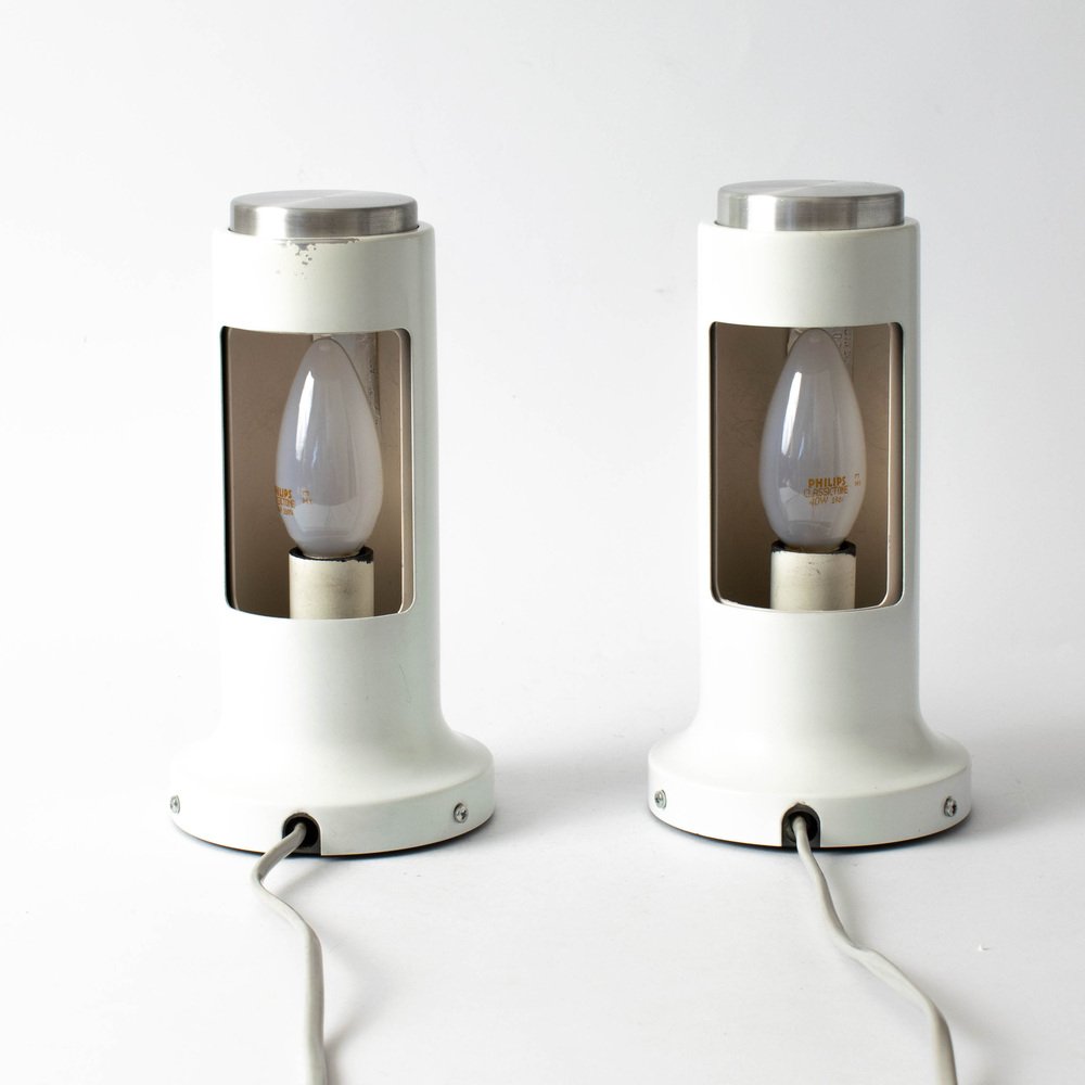 Para duńskich lamp ściennych – kinkietów, model Contact marki  Fog & Mørup. Autorem projektu jest Peter Avondoglio. Duży srebrny włącznik umieszczony jest na górze lampy. Obracając nim można częściowo przysłonić żarówkę ograniczając strumień światła. Lampa wykorzystuje jedną żarówkę typu E14.