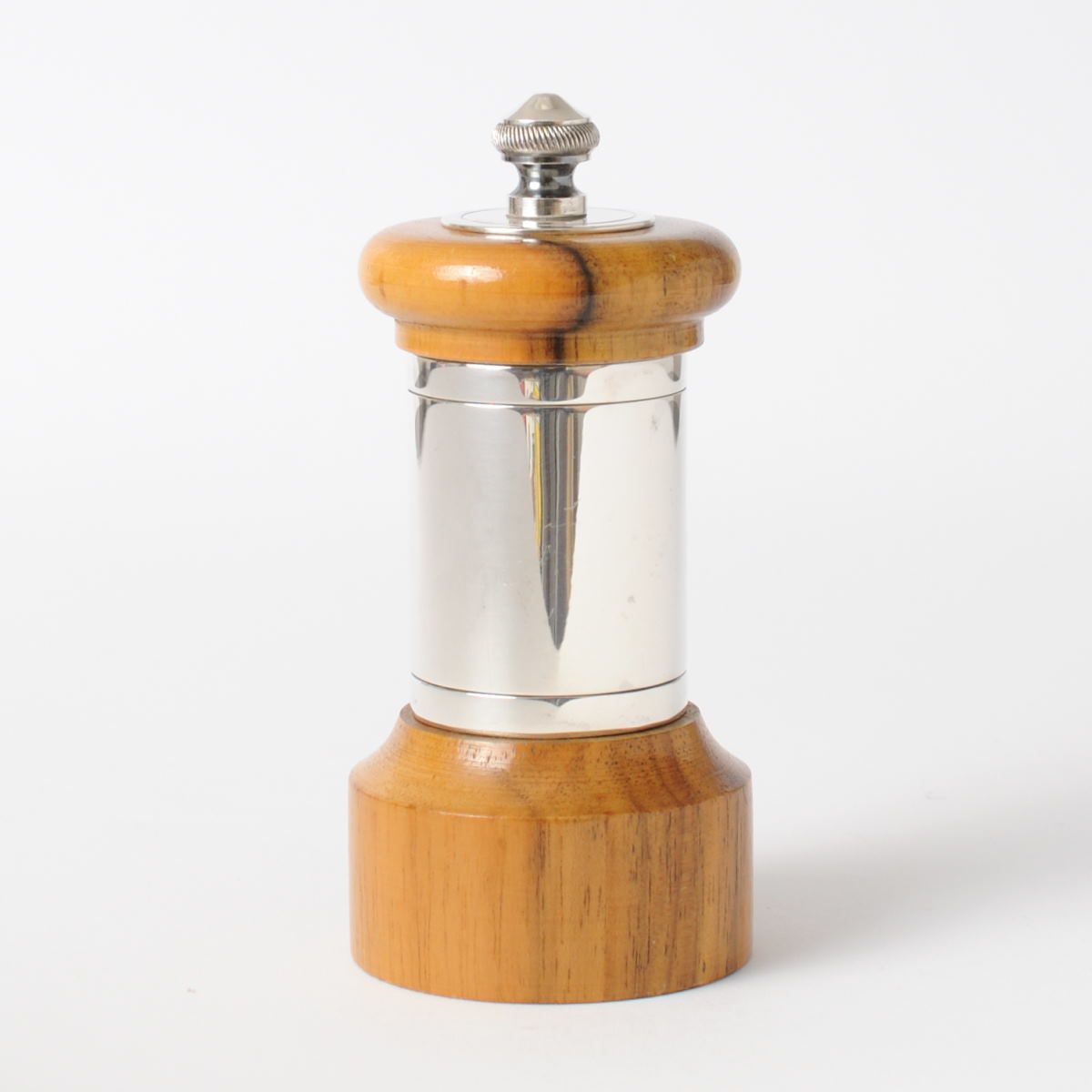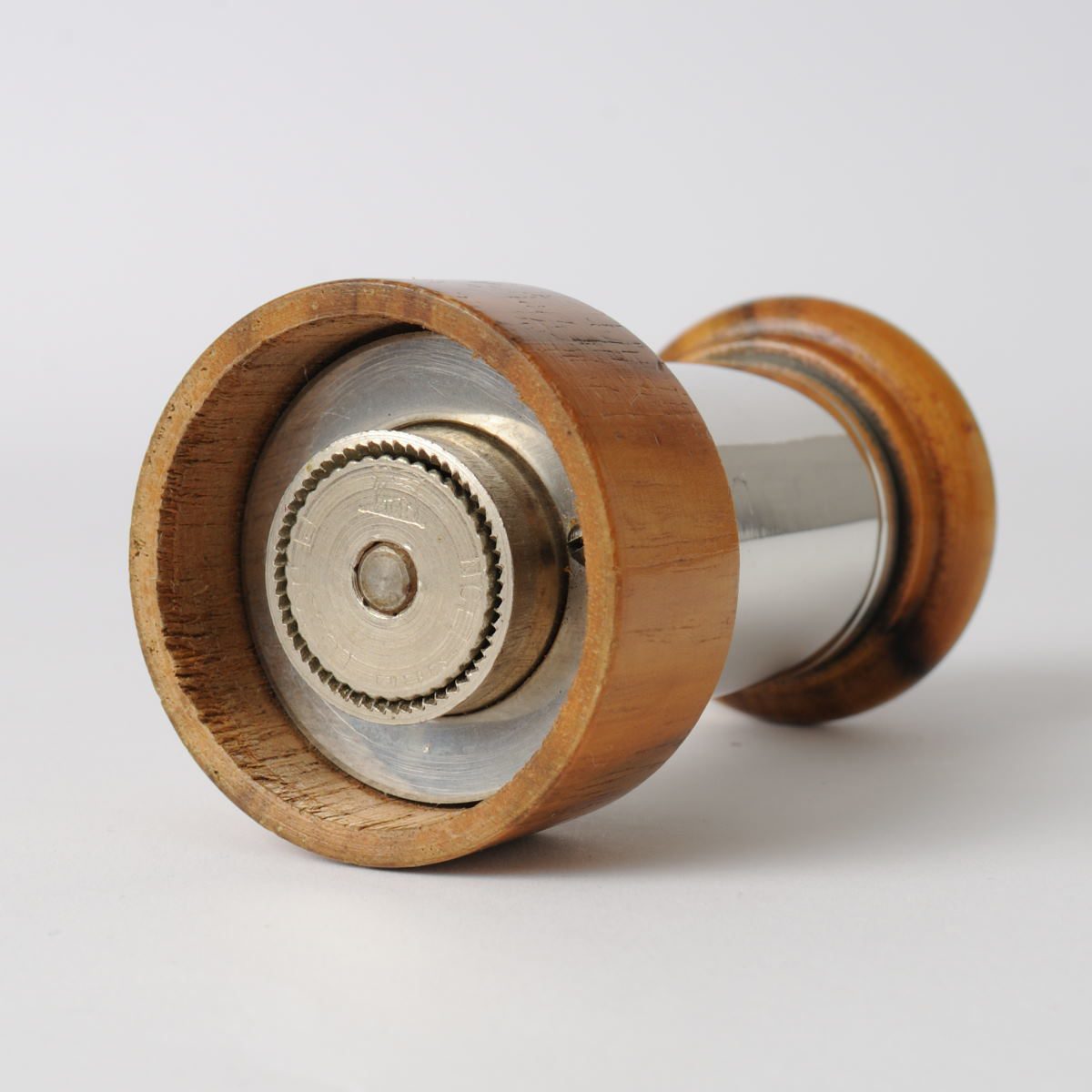 Młynek do pieprzu wykonany przez słynącą z produkcji platerów francuską firmę Christofle. Powstał w latach 60. lub 70. XX w.