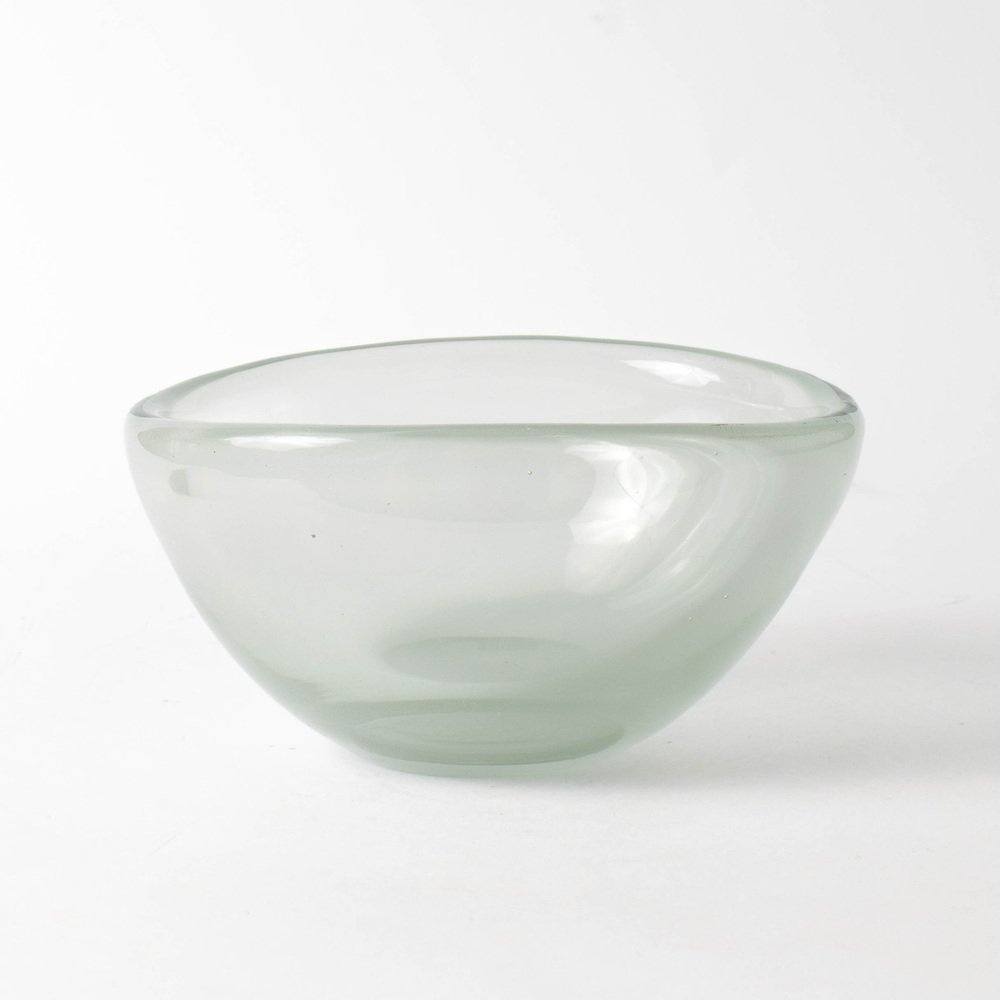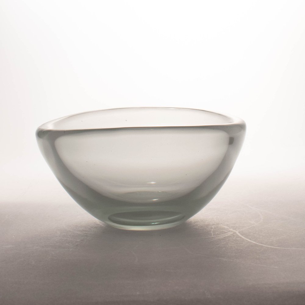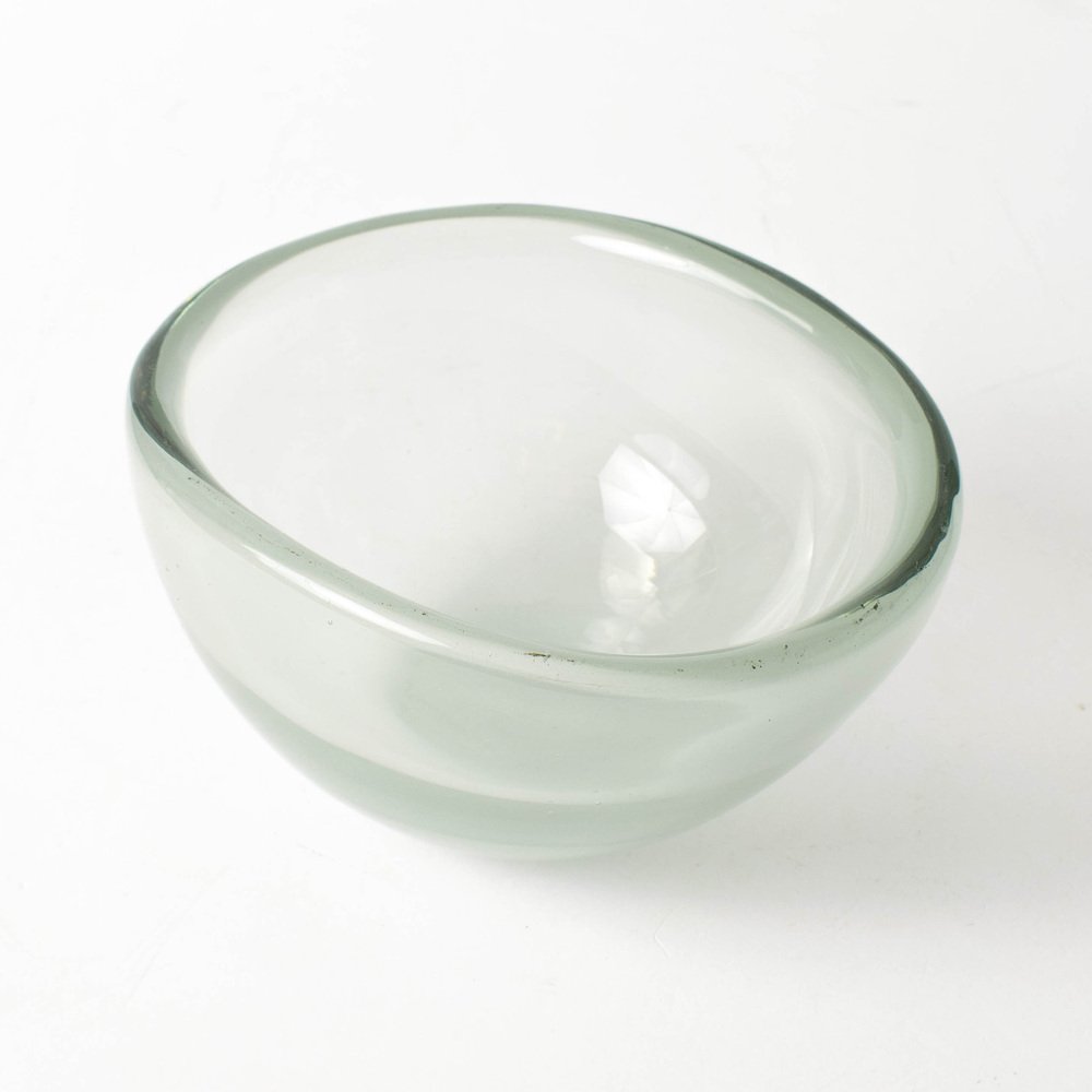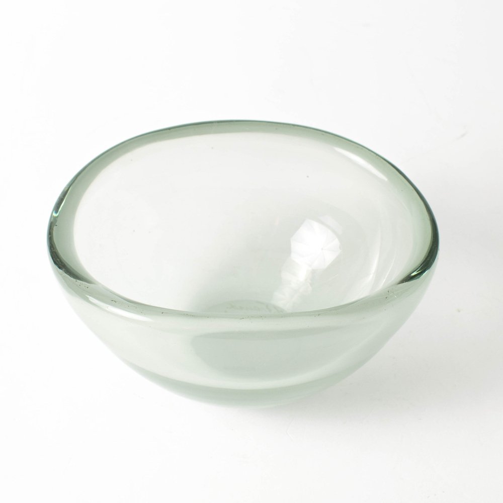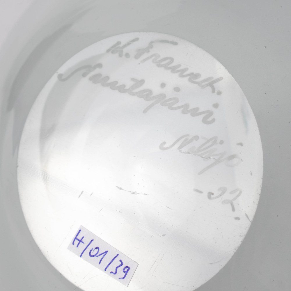 Niewielka szklana misa – patera projektu Kaja Francka. Wykonana ręcznie z półprzeźroczystego szkła z delikatnym zielonkawym odcieniem. Jest to oryginalny produkt fińskiej huty szkła Nuutajarvi z lat 50. XX w. Przedmiot jest sygnowany na podstawie: K.Franck / Nuutajarvi / Notsjo / -52.