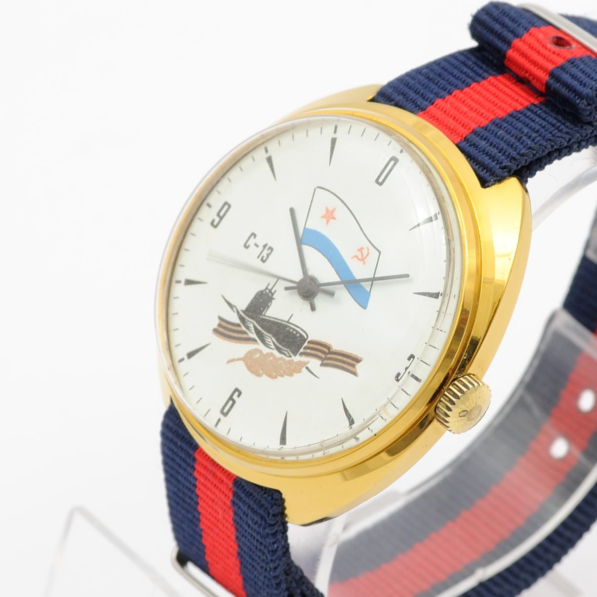 Zegarek marki Rakieta, został wyprodukowany w latach 70. lub 80. w Związku Radzieckim. Wyposażony jest w manualny (ręcznie nakręcany) mechanizm na 21 kamieniach rubinowych, cal. 2609A. Posiada rzadko spotykaną tarczę z przedstawieniem okrętu podwodnego S-13 (C-13), który w 1945 r. pod dowództwem kapitana Marinesko zatopił dwa niemieckie statki: “Wilhelm Gustloff” i “General Steuben”. Do zegarka dołączony jest nowy tekstylny pasek, tzw styl NATO.