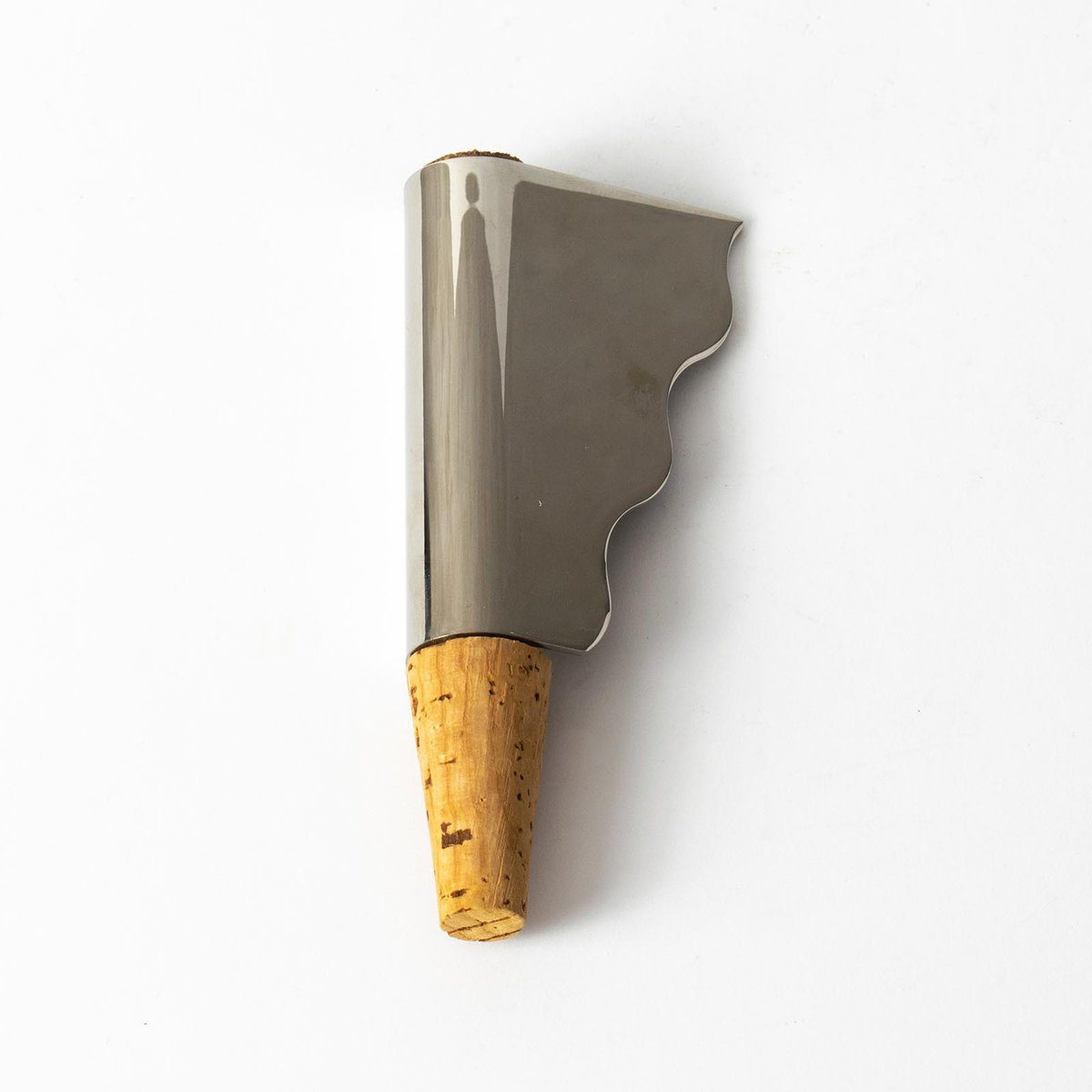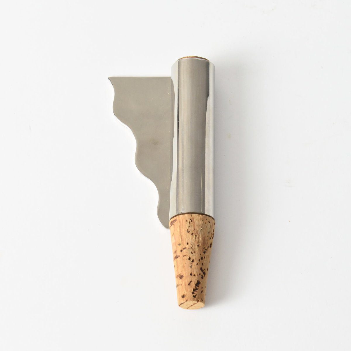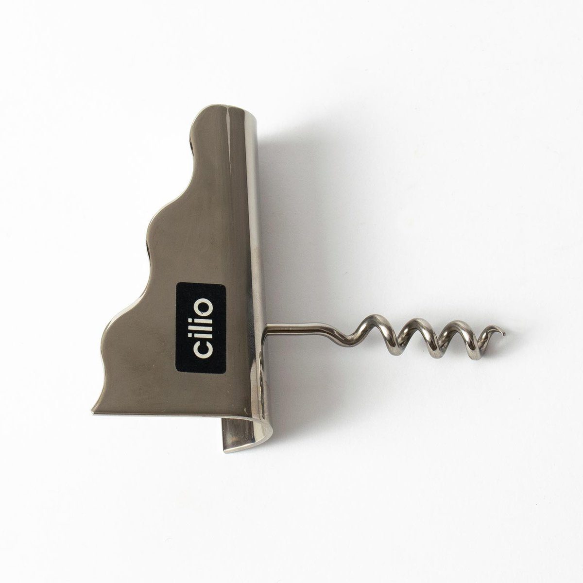 Zestaw akcesoriów barowych marki Cilio, obejmujący korkociąg, otwieracz do butelek oraz korek. Utrzymany w estetyce postmodernizmu. Wyróżnia się miękką, falującą formą, o lekko żartobliwym charakterze – bardziej projekt niż czysto techniczne narzędzie. To przykład codziennego przedmiotu potraktowanego z dystansem, typowym dla projektowania końca XX wieku.